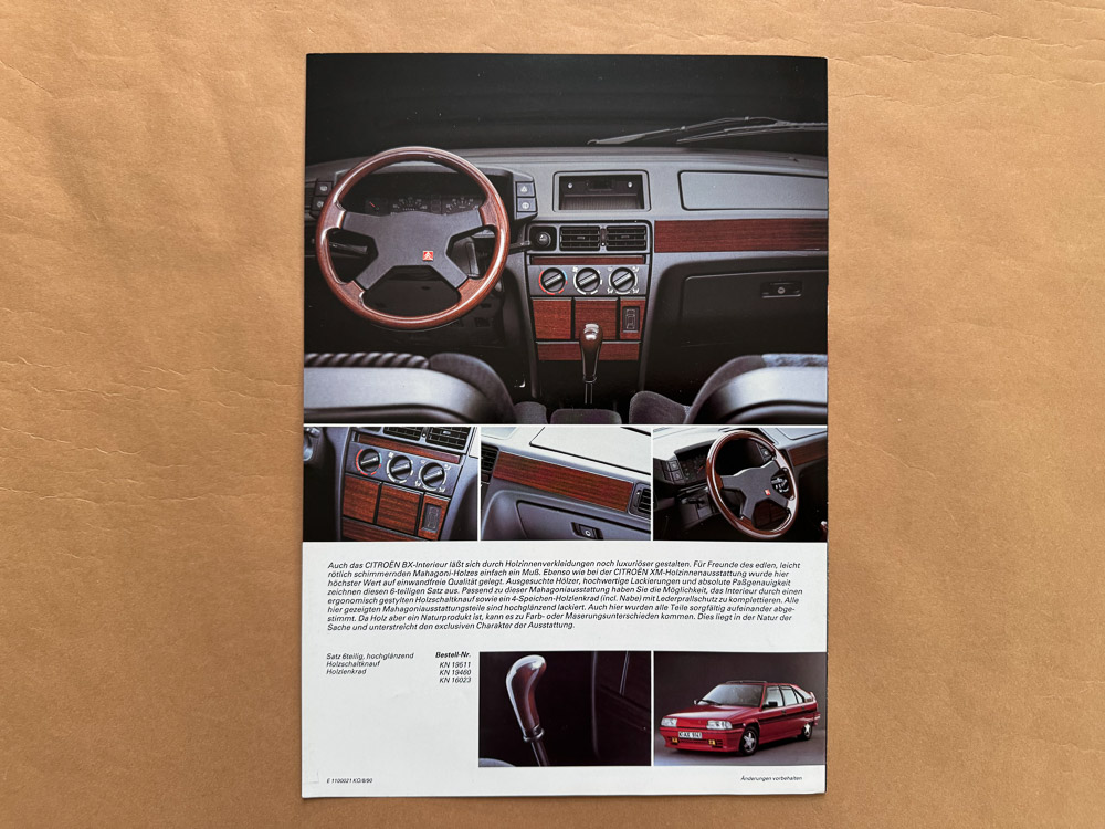 Besonderes: Mailing-Koop Citroen + Armani-Parfums, Testfahrt muss bis 30.6.91 durchgeführt werden, dann gab es den Armani Flakon. Alles komplett im Umschlag, der nach einer Ledermappe bedruckt ist.
